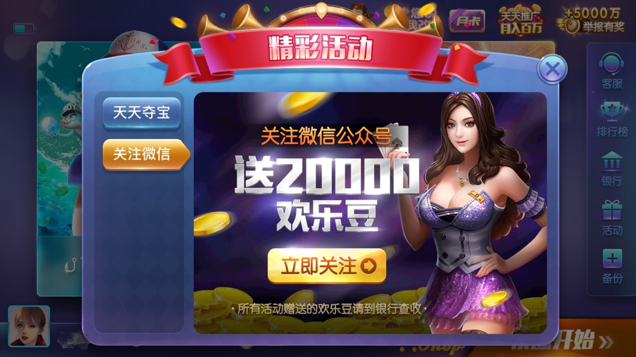 2、 关注公众号关注公众号可以领取20000欢乐豆,关注公众号后,可以第一时间获知官方活动、游戏攻略、新游上线等消息,还可以参加公众号不定期举行的抽奖活动。